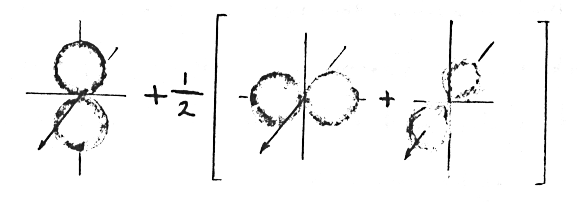 The wavefunctions for this new situation must be different from the original wavefunctions and yet they need not be very much different if the perturbation is small. Fortunately, one does not need to solve this new problem from scratch because any new wavefunction, even a distorted one, can be described by a linear combination of the old wavefunctions. This is possible because the old wavefunctions form a complete set. Thus the distorted electron cloud sketched above can be described by the following combination: